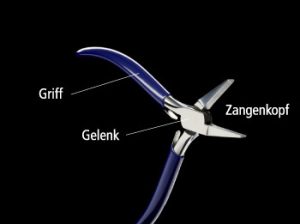 Eine Zange besteht aus zwei Schenkeln. Mit den gegenläufig sich bewegenden Greifbacken oder Schneiden wird auf das Werkstück bearbeitend oder fixierend eingewirkt.